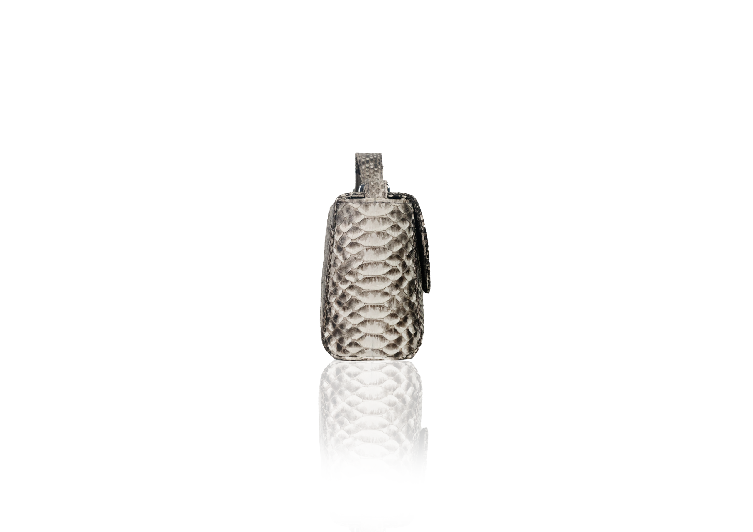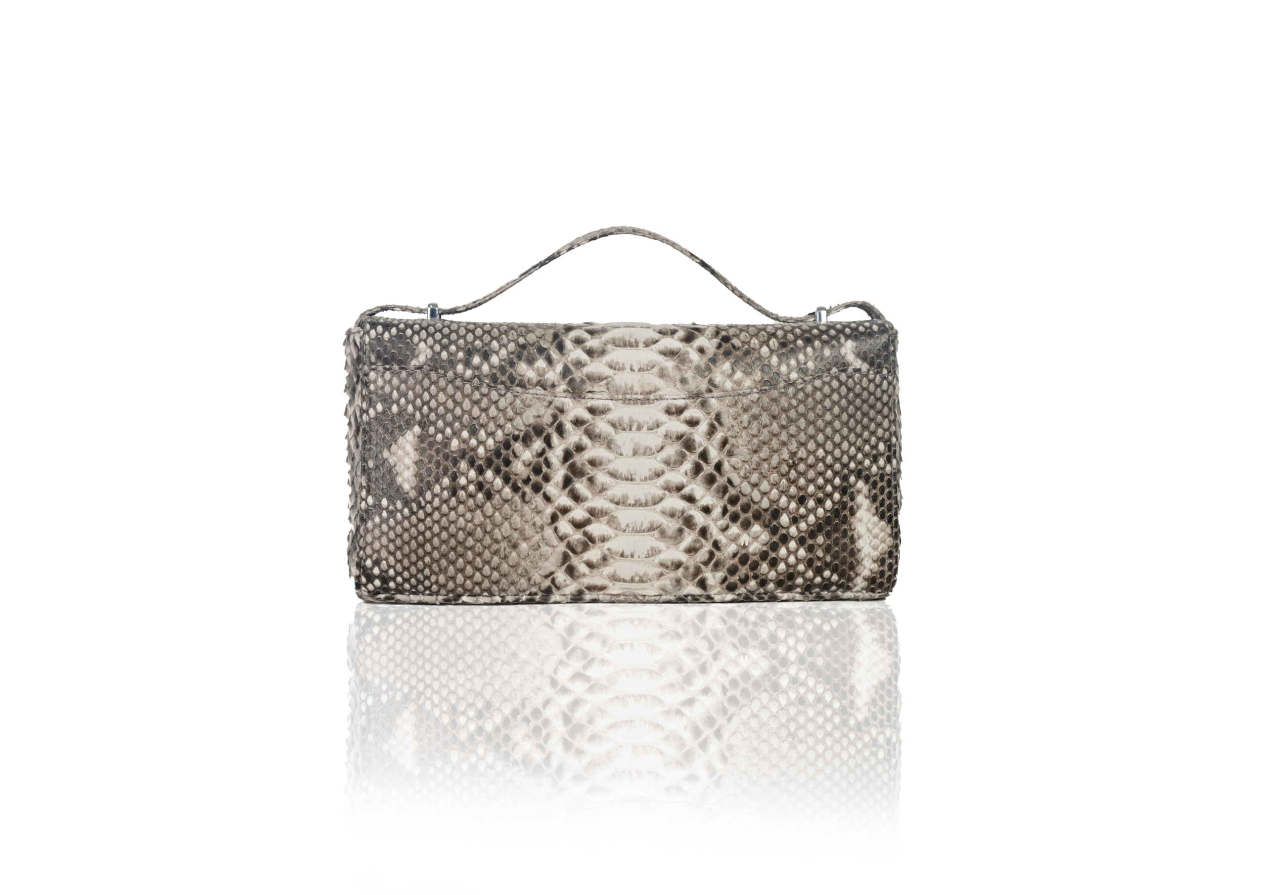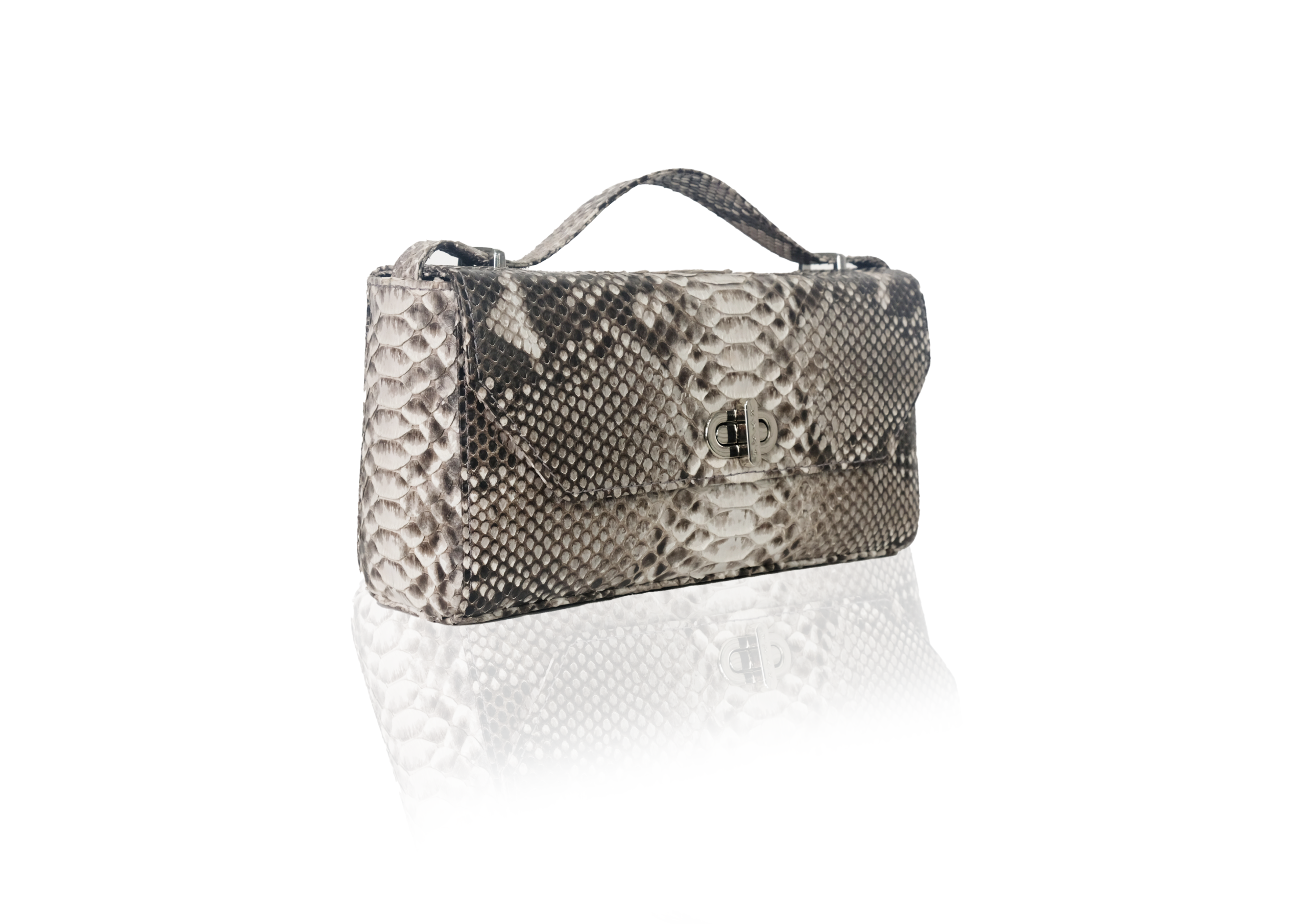 Cosette is a compact, elegant handbag crafted from exotic python leather. Designed with an adjustable top handle, it easily transforms into a shoulder bag without the need for extra straps.