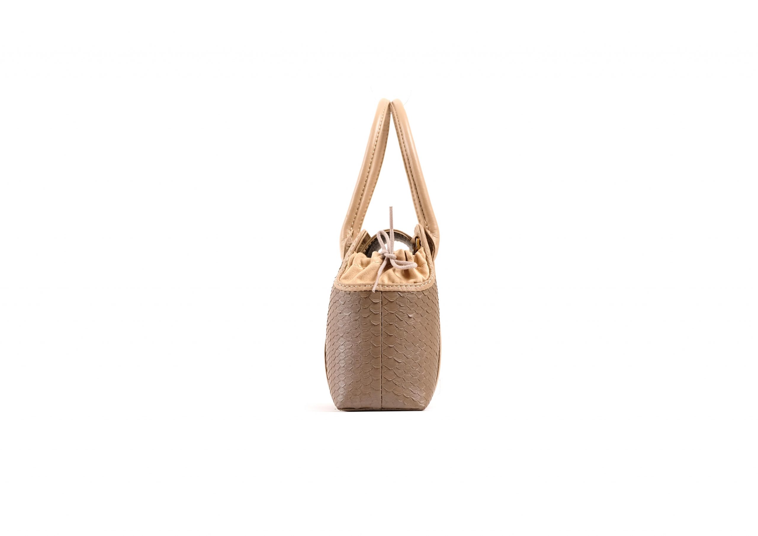 It’s made from precious python leather, trimmed with cow skin, with sueded wings on the left right side and decorated rope. Leane will keep your valuable items save and organized with the compartments inside the bags.