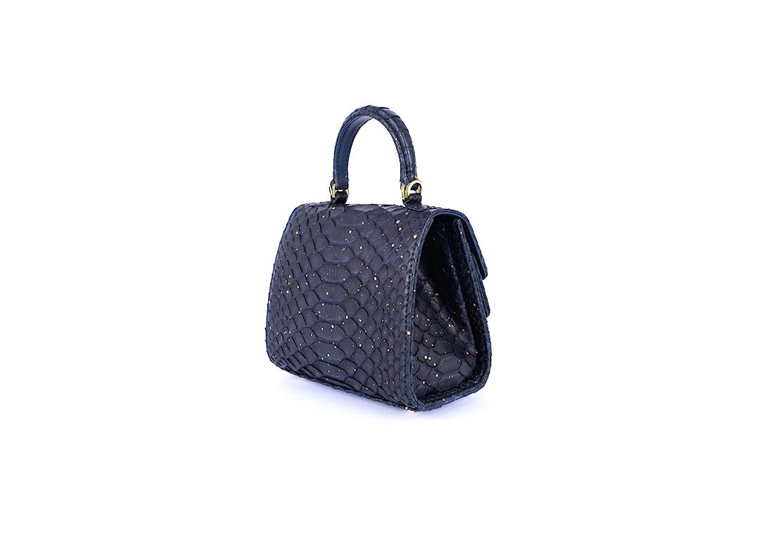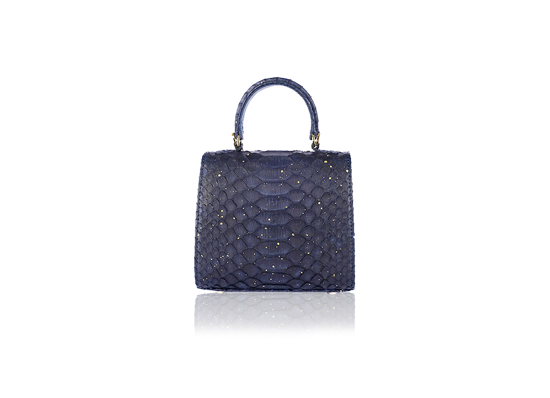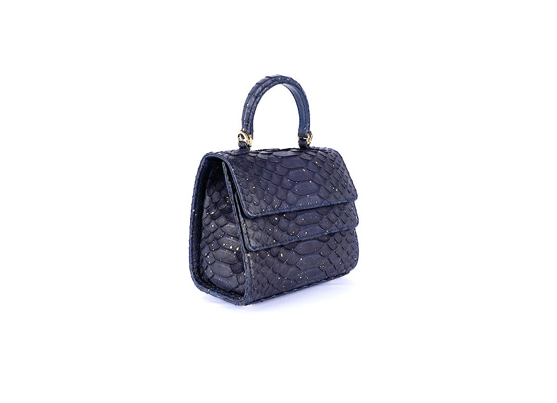 What truly defines this variant is its moody, deep navy palette. By intentionally reducing the gold brushstrokes, the natural python pattern becomes the focal point, allowing the gold accents to pop with clarity and brilliance. Designed in Milan, this python leather bag is a smart investment for those looking to be a trendsetter for Eid 2026.