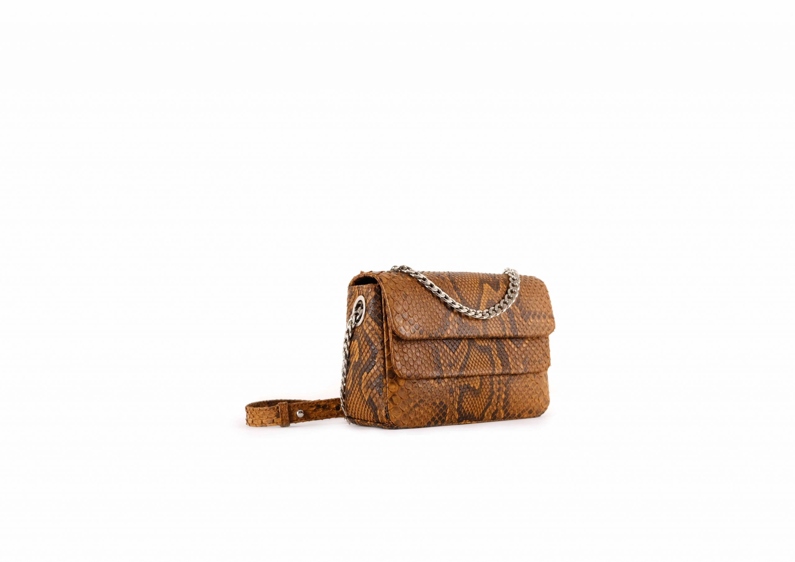 You can always identify Rubby bag by its unique three layers as seen on the front of this Rubby Cross 22 Bag. It’s made from precious pyhton leather in burgundy color and has a structured sillhouette with a zipped interior pocket and a medium open pocketto secure small items. Carry it as a shoulder bag, cross body, or style it as shoulder with belt bag at once